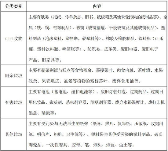 三、垃圾分類標(biāo)準(zhǔn):可回收物、廚余垃圾、有害垃圾、其 他垃圾,具體分類見下表: