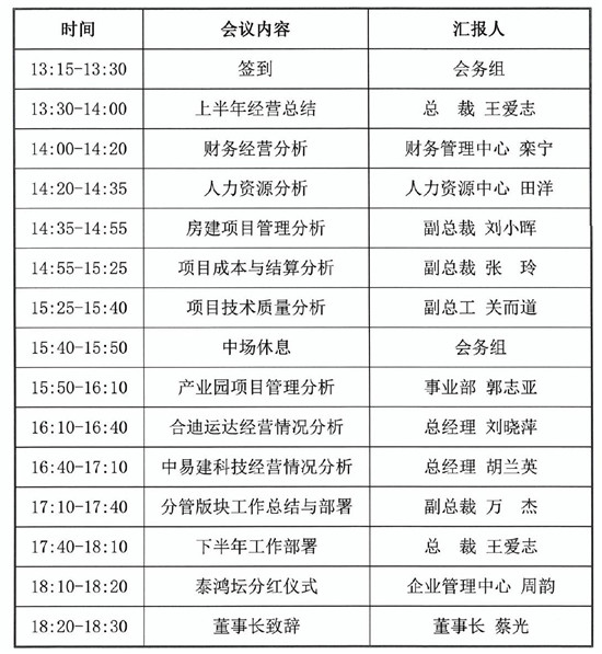 2. 各項(xiàng)目部及職能部門請(qǐng)于會(huì)后一周內(nèi)召開內(nèi)部專題會(huì), 及時(shí)宣貫本次經(jīng)營(yíng)分析會(huì)會(huì)議精神,落實(shí)重點(diǎn)工作部署。
