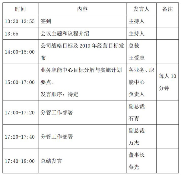 項經(jīng)營指標的內(nèi)容,使各職能部門聚焦目標,做好 2019 年工作措施和行動計劃,確保年度各項目標有效達成。