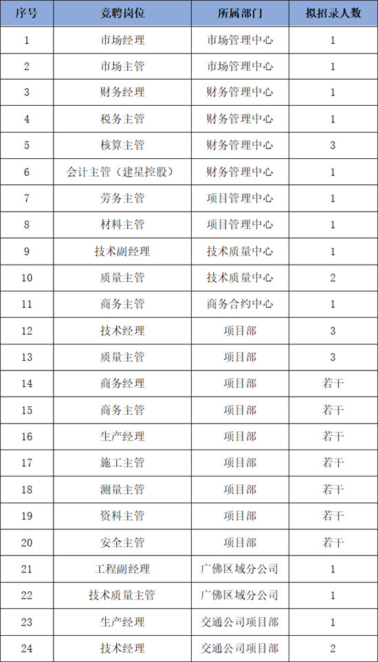 為適應(yīng)公司快速發(fā)展的人才需求,建立健全良性、公平的晉升機(jī)制,公司經(jīng)研究決定,將于9-10月份在全公司范圍內(nèi)開展內(nèi)部競聘工作,具體通知如下: