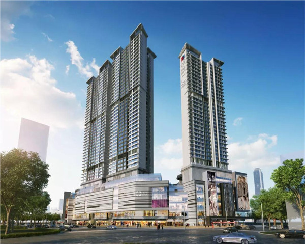 華發(fā)廣場項目位于中山市悅來南路與中山二路交匯處西南側(cè),由地下室、商業(yè)裙樓及4棟住宅組成,總占地面積為2,7300㎡,總建筑面積為19,4738.77㎡,地下為4,9381.97㎡,地上為14,5356.8㎡。塔樓建筑高度為120m、150m,建筑層數(shù)地下3層,地上34、36、42層(其中1-7層為商業(yè)裙樓,8層為轉(zhuǎn)換層),框剪結(jié)構(gòu)。