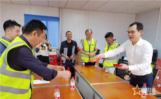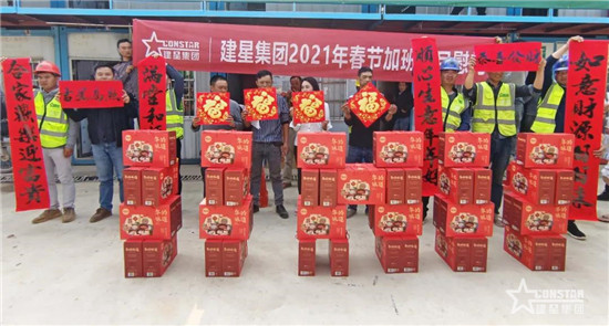 2月3-4日,集團(tuán)總裁王愛(ài)志帶隊(duì)趕赴項(xiàng)目一線,為就地過(guò)年工人送去新春慰問(wèn)和祝福。在慰問(wèn)座談會(huì)上,他強(qiáng)調(diào)黨員要充分發(fā)揮先鋒模范作用,項(xiàng)目設(shè)立黨員先鋒崗,樹(shù)立防疫搶工標(biāo)桿形象;項(xiàng)目部在做好防疫措施的同時(shí),豐富員工生活,確保就地過(guò)年工人度過(guò)一個(gè)暖心的春節(jié)。