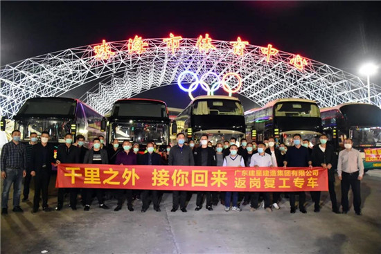 2月26日,建星集團(tuán)正式開通建筑工人“點(diǎn)對點(diǎn)”一站式返崗復(fù)工專車服務(wù),已順利完成湖南專線并接回返珠工人近百名。2月29日晚上20:30,第二批四川、重慶專線共9輛車也順利抵珠,歷時27個小時,跨越1800公里,接回約200名工人,送抵各項(xiàng)目部。