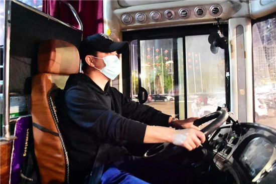 “剛開始接到接車任務(wù),其實(shí)家人還是蠻擔(dān)心我的。不過專車的防疫措施做得很好,做過全面消毒,原本可以坐50多人的大巴,因?yàn)橐3忠欢ň嚯x,按規(guī)定一排只能坐一個人,所以只坐了一半的人數(shù)。雖然不遠(yuǎn)千里一趟接人數(shù)不多,但為了大家安全,我們覺得也值得!這一趟來回3600公里,整整奔波了3天3夜,今晚終于可以好好睡覺了,不容易,哈哈……”