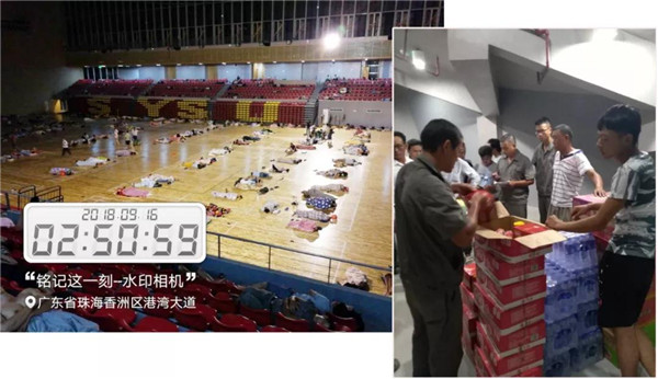 9月15日在臺風(fēng)“山竹”登陸之前,中山大學(xué)項(xiàng)目領(lǐng)導(dǎo)就提前做好準(zhǔn)備,組織在職員工有序撤離至中山大學(xué)體育館。在體育館避難過程中,我們留守的管理人員輪流值班,為各班組發(fā)放食品,確保大家生命財(cái)產(chǎn)安全。