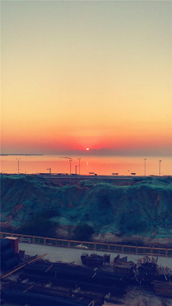 某次值班,天氣依然很熱,干完活已近黎明。身后高樓大廈,腳下鋼筋水泥,抬眼望去一輪火紅的太陽(yáng)從海平面冉冉升起,真的好美。如果是有藝術(shù)細(xì)胞的人,可能會(huì)寫(xiě)首詩(shī),我完全沒(méi)有。只是感覺(jué)很幸福,并用手機(jī)記錄下了這份美好。